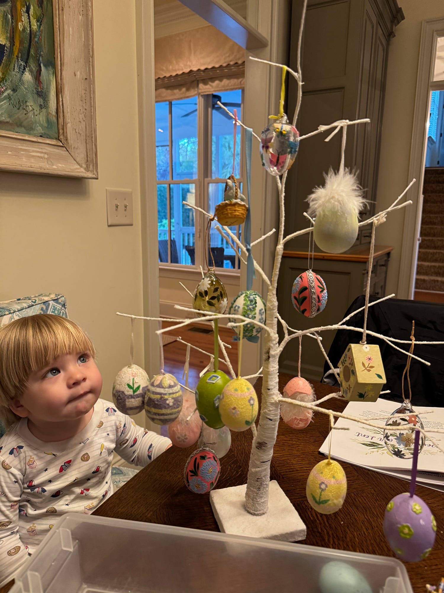 Growing up, I loved decorating my mom’s Easter tree. This past Monday, while she was babysitting my son, he got to help decorate it too. I don’t have one yet, but I have my eye on a few! She’s been collecting her eggs from all over the world, and I plan to paint some myself to start my own collection.Dye real eggs with cool whip and food dye