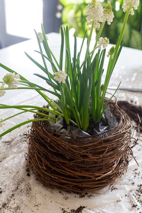 I recently saw someone joke that they were dyeing potatoes instead of eggs this year because of the high cost, which made me laugh. I’ll still be taking part, but I plan to try something new—Cool Whip-dyed eggs! Here’s the article I’m going to follow.Make spring planter that looks like a nest